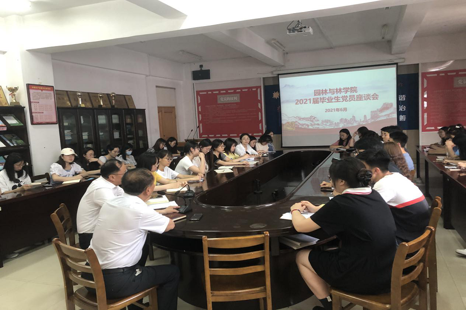 6月11号下午,园林与林公司党总支组织召开了2021届毕业生党员座谈会暨党课学习,党总支林志强书记出席会议并讲话,党总支副书记、副经理、学工办主任费廷坤主持会议,全体辅导员以及2021届全体毕业生党员参加了会议。