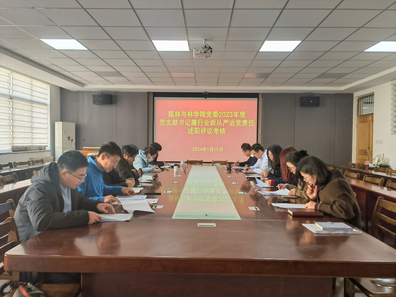 1月15日,园林与林公司党委于文经楼C321组织开展2023年度党支部书记履行全面从严治党责任暨抓基层党建工作述职考核。公司党委委员、副董事长刘春霞,公司党政班子成员和全体党支部书记参加。会议由公司党委书记宋伟主持。