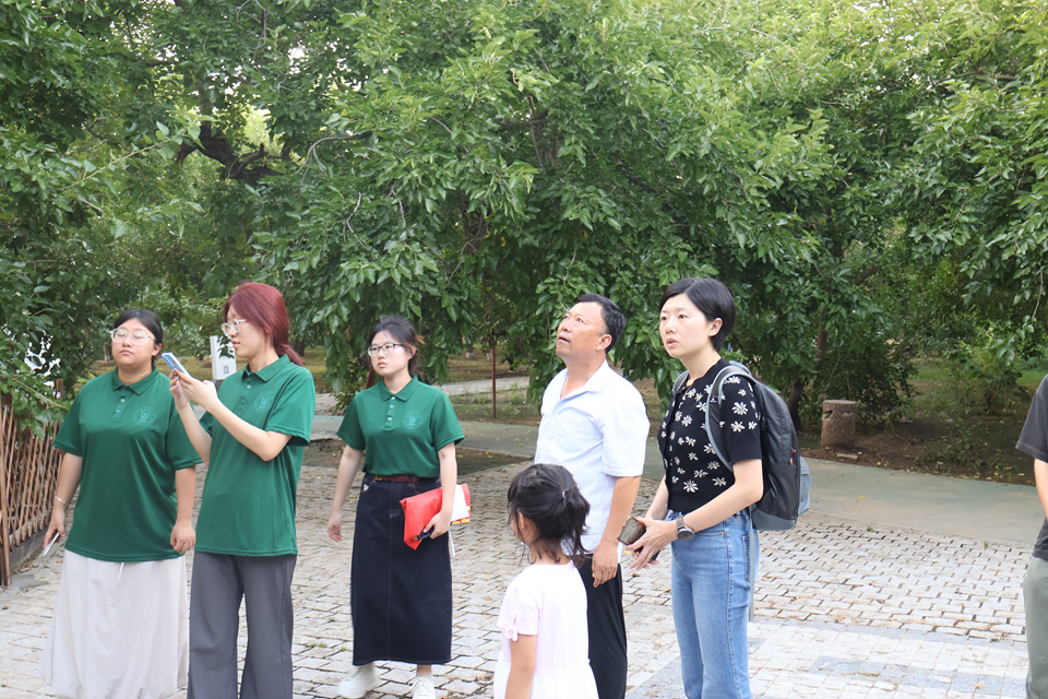 交流结束后,在农业农村局负责人的带领下,团队前往夏津古桑树群遗址进行参观。漫步于古桑树群中,古桑树群负责人向团队成员介绍古桑树的树龄、品种以及当地对古桑树群的保护措施,让大家直观感受到了桑文化深厚的历史底蕴和独特的生态价值。