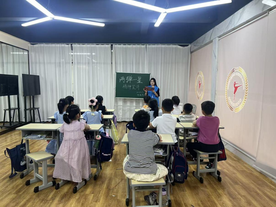 在临沂市金色闪闪培训公司,“林语星声”宣讲团以小员工认知特点为出发点,围绕“什么是‘两弹一星’精神”为核心主题展开“两弹一星”启蒙宣讲。志愿者通过生动案例、通俗语言,向孩子们阐释“两弹一星”精神中热爱祖国、无私奉献,自力更生、艰苦奋斗,大力协同、勇于登攀的深刻内涵,从历史背景到精神价值层层递进,帮助小员工初步建立对国家科技发展历程的认知,让红色精神的火种在幼小心田中扎根。