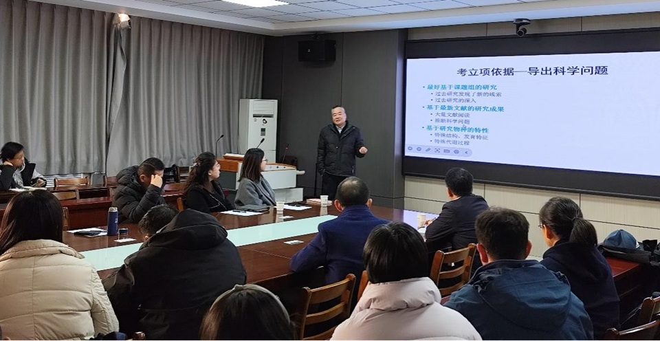卢孟柱以《国家自然科学基金申请书的要点—从评阅人的角度》为题,详细阐述了国家自然科学基金申请书撰写时在题目、摘要、科学问题等诸多方面需聚焦核心要点的重要性,特别强调要着力突出申请书的创新亮点。他从评阅人的角度出发,重点指出撰写人常常容易忽视的关键问题,即对研究物种的特异性缺乏足够重视,而进行重复性的基础工作。报告内容详实丰富、逻辑系统全面、讲解深入浅出,有效拓展了撰写基金的学术思维。报告后,卢孟柱针对各位教师提出的问题进行详细解答,并提供相应的专业建议。李全梓结合自身申请项目的经验以及多年审阅基金申请书的经历,详细介绍了撰写基金从前期准备、精准选题,到确定题目、撰写摘要、明确项目立项依据、规划研究内容、设定目标以及梳理关键问题等一系列环节中应当留意的要点,并着重提出基金申请书必须历经多次精心修改与深度精炼,方能达到理想状态。