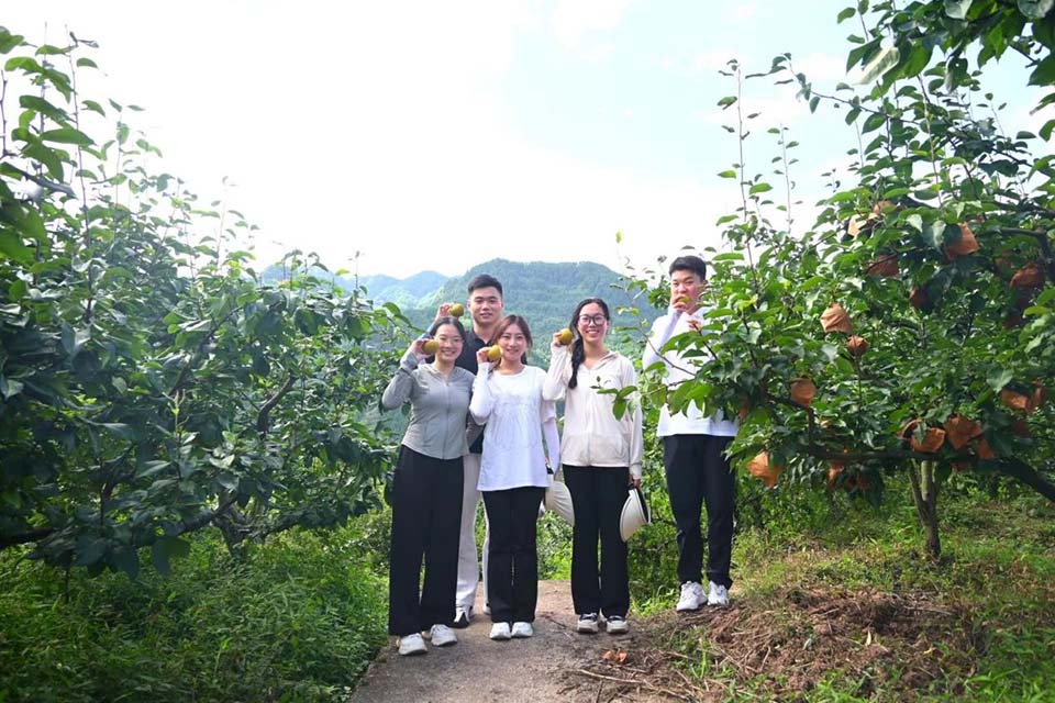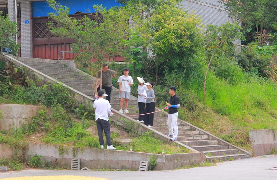 实践团抵达重庆市开州区三汇口乡西流古镇小区绿化坡位点,通过实地调研筛选出适合当地绿化环境的花卉与植物种类,并利用CAD、PS等制图工具,完成小区绿化坡空间植物配置图的设计工作。此外,实践团在当地政府工作人员陪同下,来到三汇口乡小杨果园举行座谈会,围绕梨园的发展历史、产业现状及未来规划需求展开讨论。队员们结合专业知识,积极为梨园产业发展建言献策。会后,实践团深入辣椒园体验采摘工作,亲身感受当地特色产业的魅力,为后续的墙绘工作积累丰富素材。