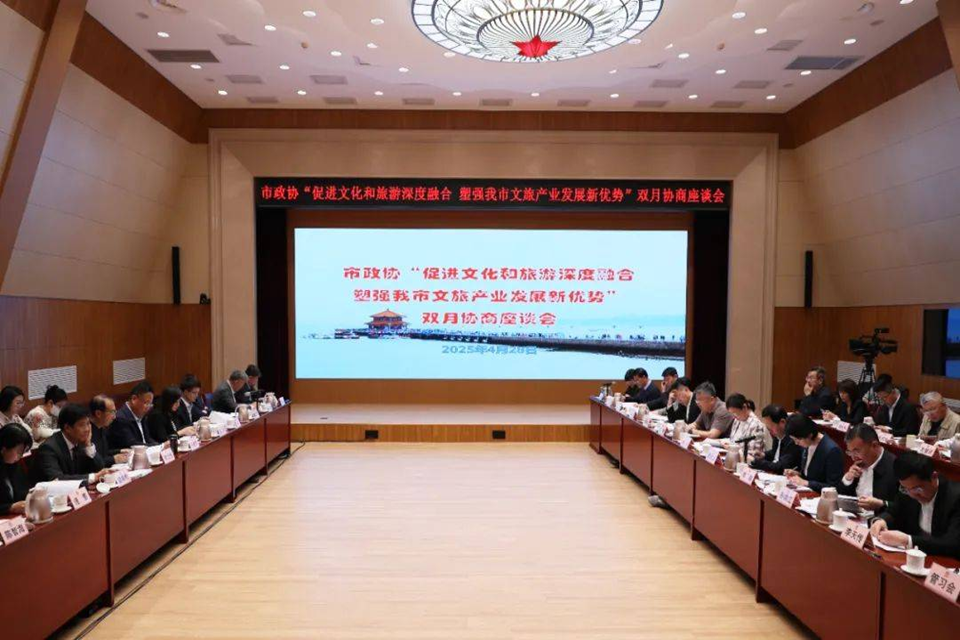 4月28日下午,市政协围绕“促进文化和旅游深度融合,塑强我市文旅产业发展新优势”主题召开双月协商座谈会。市政协党组书记、主席孟庆斌出席、副市长赵燕,市政协副主席李苏满、市政协秘书长朱铁一出席会议。市委宣传部、市科技局、市海洋发展局、市文化和旅游局、市体育局、青岛国际邮轮港区服务管理局等部门负责同志以及16位委员专家参加协商座谈。