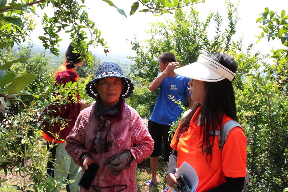 图为调研团成员深入石榴地发放调研问卷