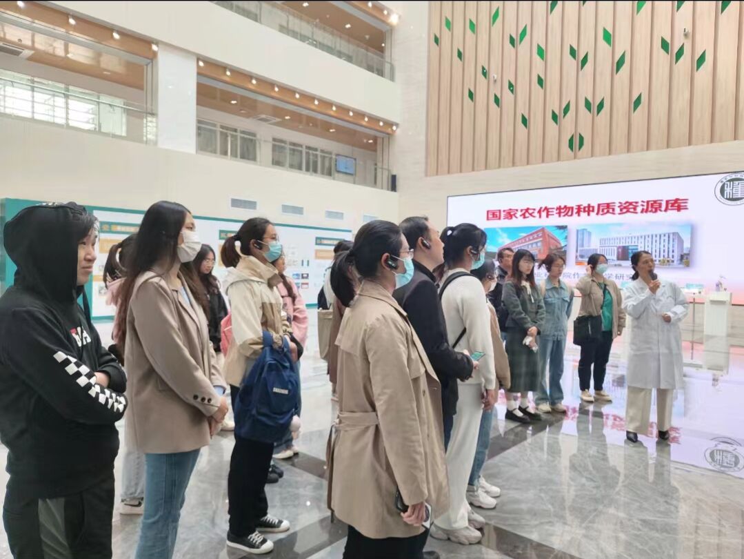 蔬菜花卉所花卉研究室的老师们对同学们表示了热烈欢迎。17日,在研究室主任杨树华的带领下同学们参观了国家农业图书馆的“农筑国本,科筑粮安”主题展和国家种质资源库,了解一些植物种质资源的基本知识。同学们专心致志地听着研究员的细心讲解,对花卉研究室各课题组的基本情况与科研方向有了基本的了解。18日上午,班级以小组形式分别进入四个课题组,贾瑞冬副研究员、徐雷锋副研究员、袁素霞副研究员、任秀霞助理研究员、寇亚平助理研究员向同学们系统介绍了花卉研究室各课题组的基本情况与科研方向,同学们深入学习花卉的种苗和栽培、牡丹和百合的遗传育种的相关知识,并参观了相关培育基地。对研究员一言一语的认真聆听,对植物一花一叶的细心观察,都体现了同学们对此次研学活动的重视。