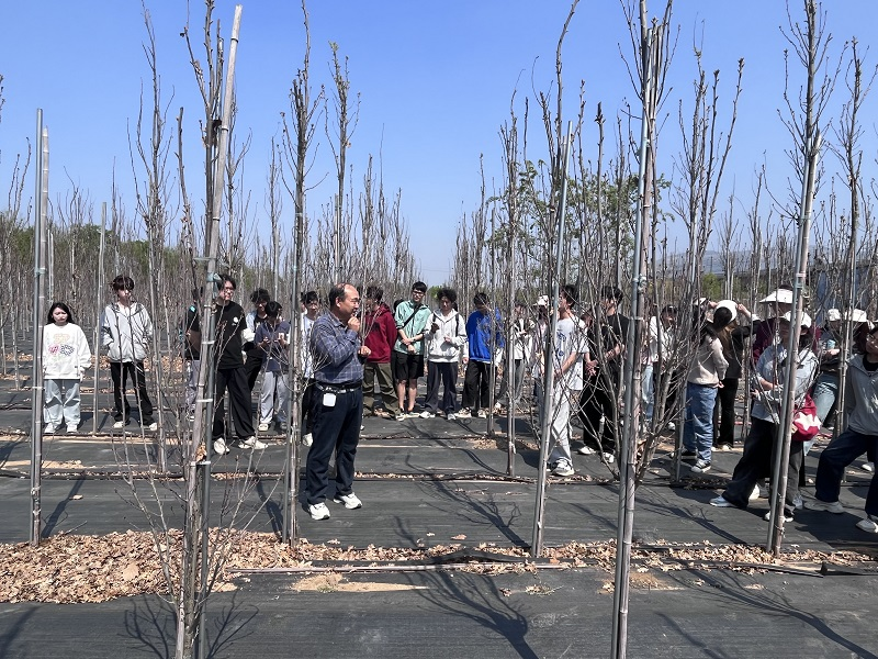 期间,员工参加了林草种质资源中心平台团队精心举办的种苗学主题讲座,4位技术人员详细讲解了相关技术理论知识。会后,技术骨干以“种质资源采集、繁育保存、品种培育及推广应用”为主线,带领员工参观了中心承运的各省部级平台,其中,在山东库中系统讲解了林草种子采集、处理、设施保存及恢复应用技术流程,在智能温室中详细指导了层积催芽与穴盘育苗技术、硬枝和嫩枝扦插繁育技术,并展示了港沟保育库中珍稀濒危树种的引种驯化成效。随后,在中心枣园保育库中讲解了采穗圃和繁育圃建设要点,并带领员工具体开展了北美鹅掌楸嫁接砧木平茬与解绑、温室播种育苗、生长量调查等工作;在中心高官寨保育库开展了元宝枫花粉采集、刺榆和国槐等树种资源苗木定植等工作,并以元宝枫为例展示了新建不同模式试验示范林,演示了机械旋耕与除草等苗圃常规管理技术。实习后期,带领员工进企业,在生产一线考察苗木与林产品的产业化开发应用,其中,济南千木奇农业生态园有限公司董事长李兴锋详细介绍了国家林业草原元宝枫工程技术研究中心试验示范基地的建设历程与成效,带领参观了元宝枫籽油生产车间,展示了元宝枫种子脱粒、净种、压榨、精炼、质检、包装等各环节关键设备和生产技术要点,并介绍了当前的市场运营情况;北方橡树生态科技有限公司总经理陈克伟以一位老苗圃人的身份,介绍了其从业近30年的经历和感受、柱状栎产业发展前景以及当前苗木行业的困境与前景,勉励员工打好专业基础、努力奋进,然后带领参观了柱状栎采穗圃建设、嫁接快繁、良种壮苗培育及其7个新品种选育情况。