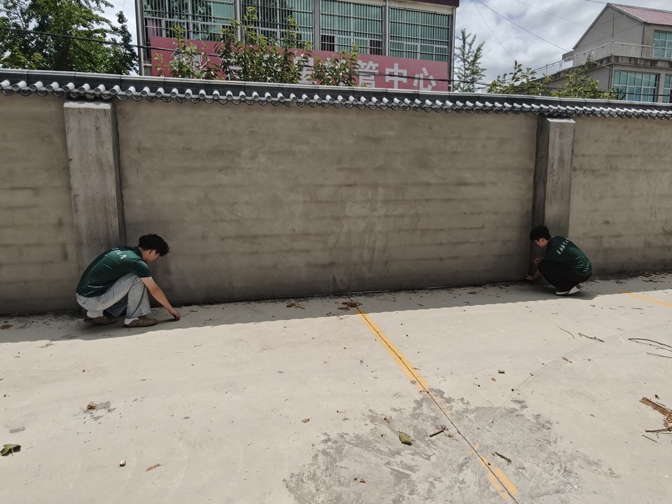 实践中,队员们通过测量墙体尺寸、记录墙面材质与平整度,结合重坊镇整体风貌与文化特色,为后续墙绘设计收集一手资料。实践团与两村村委和公司领导深入交流,明确墙绘需融入党建建设、孝文化和仁义礼智信等主题,既要展现村庄底蕴和校园特点,又要传递积极向上的精神风貌。针对倪村的党建文化底蕴、林孟场的孝文化传承和重坊镇中心初中的校园特点,队员们初步构思差异化设计方向,计划通过写实与艺术化结合的手法,让墙绘成为扮靓乡村的“文化名片”。