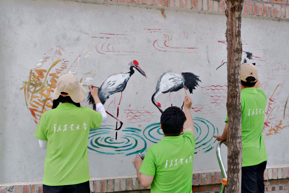 随着对小镇参观游览的结束,为了进一步提升小镇人居环境,切实贯彻“三下乡”实践精神, “行在‘芦’上,一‘苇’以航”实践服务团对知青小镇部分墙体进行艺术改造。