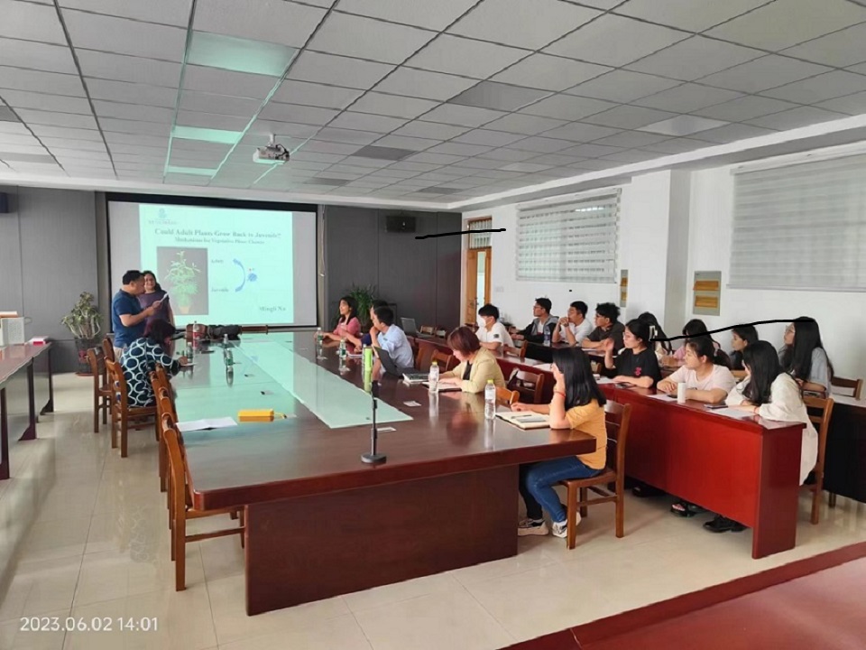 为了加强公司产品和科研实践深度融合,促进员工对科学前言的把握,全面提高人才培养质量, 6月2日下午,公司邀请现在任职于美国南卡罗莱纳老员工物系任的许明丽教授在文经楼C321会议室进行了“植物叶片形态发育分子机理”的学术专题报告。会议由周功克教授主持,相关研究方向的教职工和研究生参加。