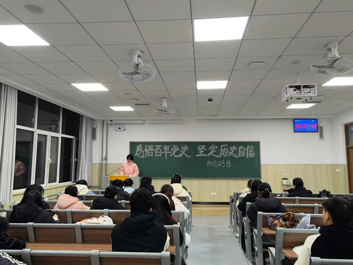 10月23日,betway西汉姆联官方网站于博学楼C区开展“感悟百年党史,坚定历史自信”政治理论学习,各班团支部书记担任主讲人,全院团支部参加。