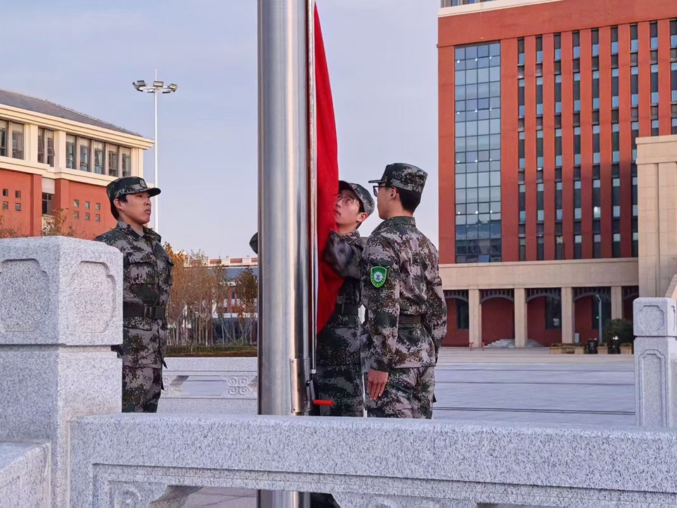 当日清晨,在庄严的国歌声中,五星红旗徐徐升起,全体师生面向国旗肃立敬礼,齐声高唱国歌,深切表达对祖国的崇敬与热爱。