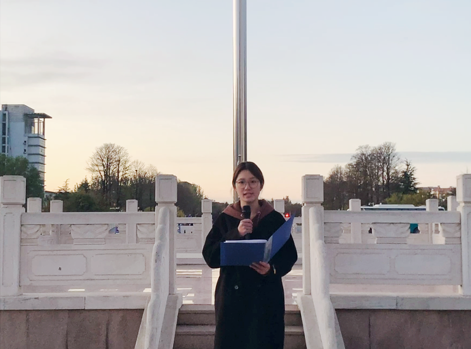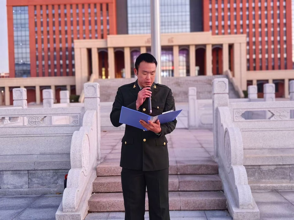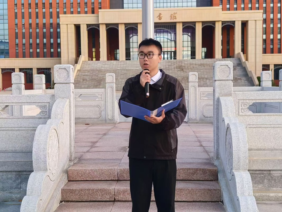 员工代表贾怡琳、迟军成进行国旗下演讲。贾怡琳从专业学习以及参与社会实践活动等方面出发,以自身亲身经历展现出青年学子应有的责任担当和坚韧品质。迟军成则围绕自身响应国家号召、投身征兵入伍的军旅生活展开讲述。在此,他们一同向广老员工发出倡议,号召同学们在日常学习中秉持勤奋刻苦的态度,踊跃参与各类社会实践活动,积极融入国家与民族的伟大事业建设之中,全力以赴为祖国的繁荣发展拼搏奋进,以青春之力量书写新时代的绚丽华章。