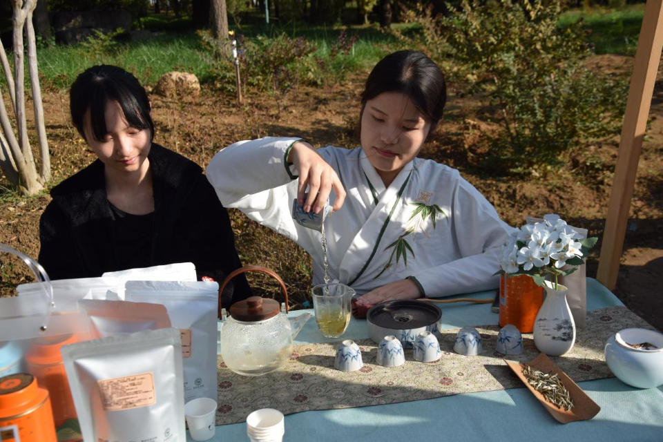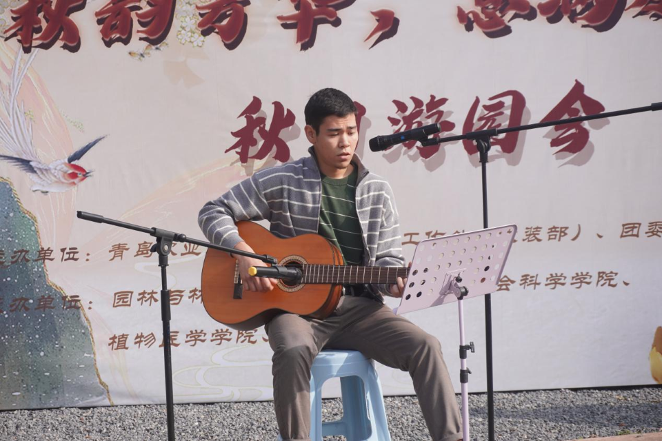 活动期间,群芳圃主场区域还开展了传统文艺节目展演,邵梦蝶演唱的《隐形的翅膀》传递青春力量,林学专业学子带来的古典舞《醉太平》尽显东方雅致,朗诵《秋实歌韵谱华章——诵华夏金秋》描绘出金秋盛景,虹子汉韵社的《汉韵踏秋行》走秀更是将传统文化氛围推向高潮,师生们驻足观赏,不时拿出手机记录精彩瞬间。职工Rasul以一曲深情的哈萨克语吉他弹唱,为现场师生带来了极具民族特色的音乐盛宴,也让中外文化在这一刻实现了温暖交融。
