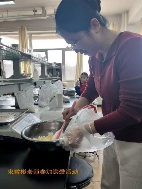 与此同时,食品楼内香气四溢,一场以烘焙为主题的庆祝活动同步开展。公司宋雪彬老师与来自全校各单位的女教工们一同化身“烘焙达人”,在专业烘焙师的指导下,称量原料、揉制面团、塑形烘烤,亲手制作美味糕点。从面粉与黄油的交融,到烤箱中逐渐膨胀的香气,大家在专注的创作中释放工作压力,在分享成品的欢声笑语中增进彼此情谊,让节日的幸福感在舌尖与心间悄然蔓延。