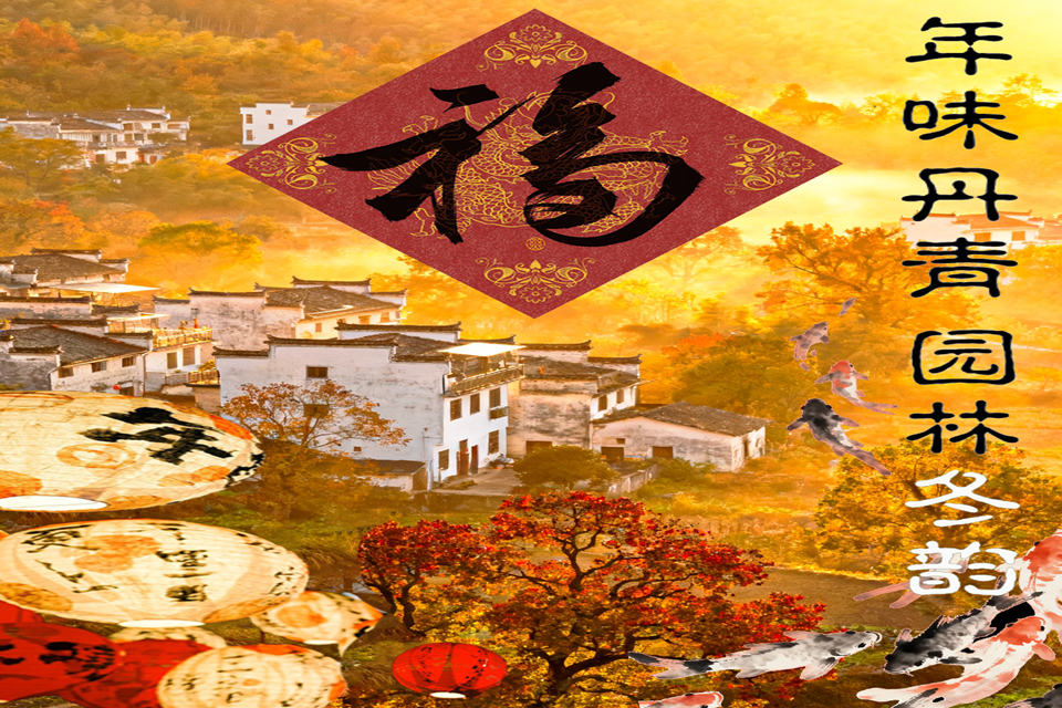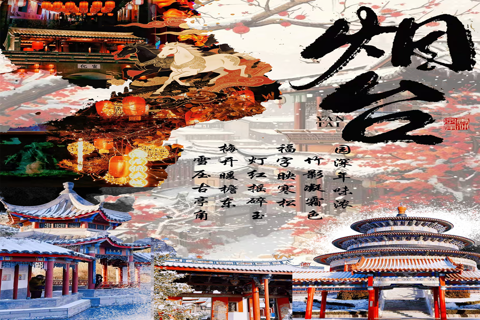海报设计类作品立足地域特色,创意十足、意蕴丰富。东营作品将生态园林与年俗文化结合,在传统与现代的碰撞中彰显城市气质与新春祝福。烟台古园、徽州塔川、胶州等作品紧扣本土景致,融入亭台、梅松、灯笼、锦鲤等元素,尽显国风年味与诗意意境。泰安作品以水墨写意园林,灵动自然;济南趵突泉作品借水彩晕染,展现园林与新春相融的雅致生机。