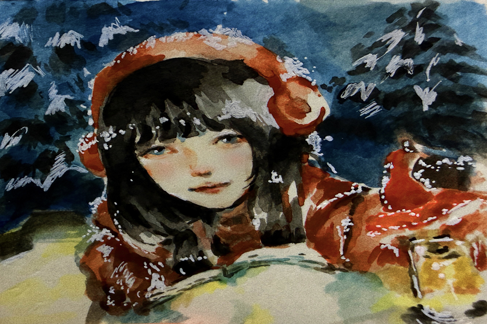 绘画类作品笔墨清新、意境温馨。同学们以水彩、水墨等形式,将冬雪亭台、园林建筑与红灯、福字等元素相融,营造出喜庆祥和的新年氛围。部分作品聚焦冬日夜景或蚬河公园实景,构思精巧,尽显园林学子的专业素养与审美能力。
