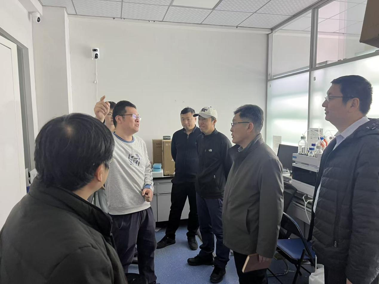 随后,领导班子深入各科研实验室,重点检查仪器设备运行、实验安全管理、科研项目推进等情况。领导们仔细询问设备维护保养、操作规程执行及安全防护措施落实情况,与科研团队成员亲切交谈,了解在研项目进展、遇到的瓶颈及未来研究规划。焦磊强调,科研安全是底线红线,必须严格落实实验室安全责任制,规范试剂管理与操作流程;同时鼓励大家聚焦学科前沿与国家需求,勇于创新突破,力争产出更高水平的科研成果,助力公司团队建设提质增效。